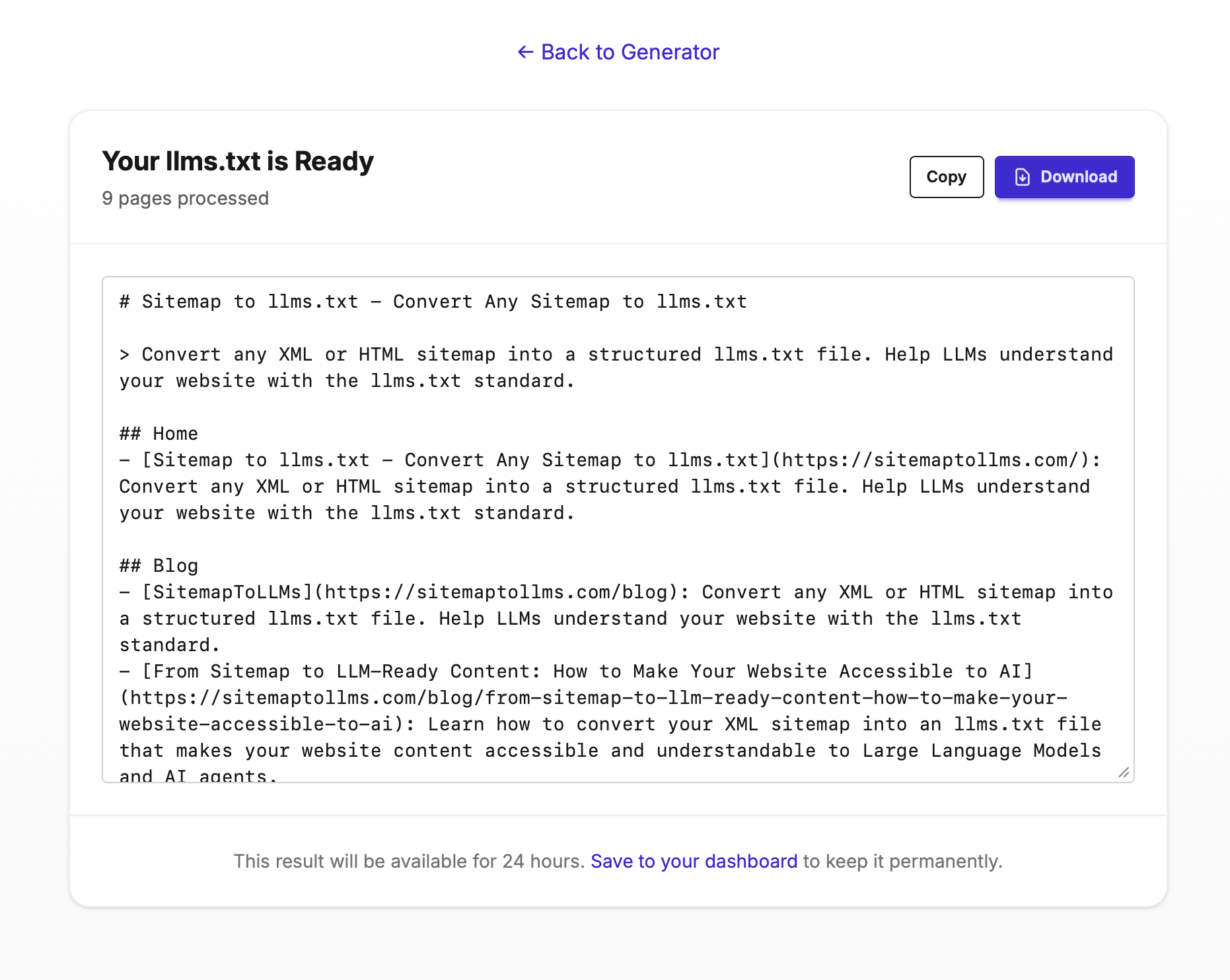 SitemapToLLMs solves this by automating the entire process.